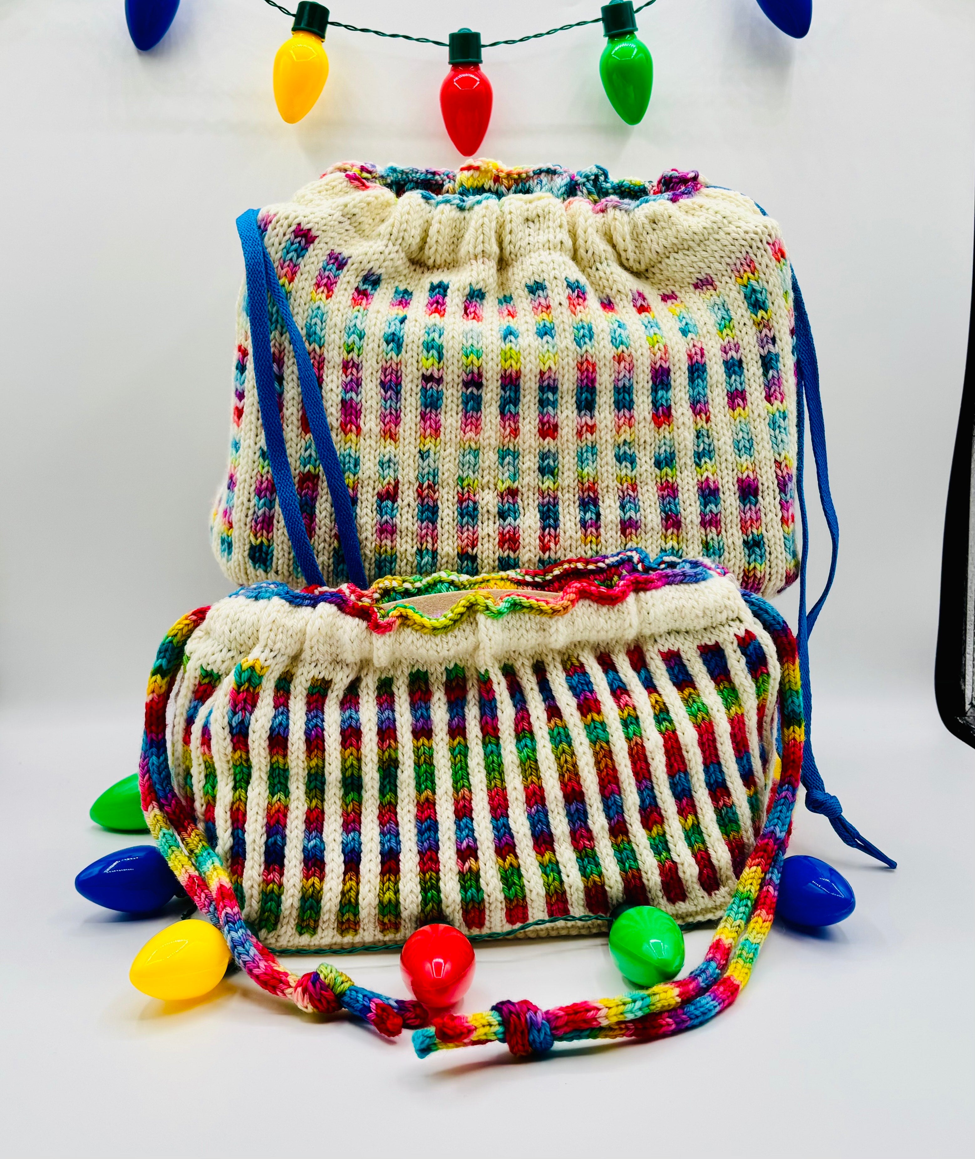 Each Churchill Avenue kit is enough to knit one pattern except the Dumplin' Bag, which you can knit both sizes with one kit! The patterns can be purchased on Etsy, Ravelry and Cori's website, irocknits.com. Churchill Avenue mitts and hat are available now and the companion Dumplin' Bag will be available beginning on December 5th.