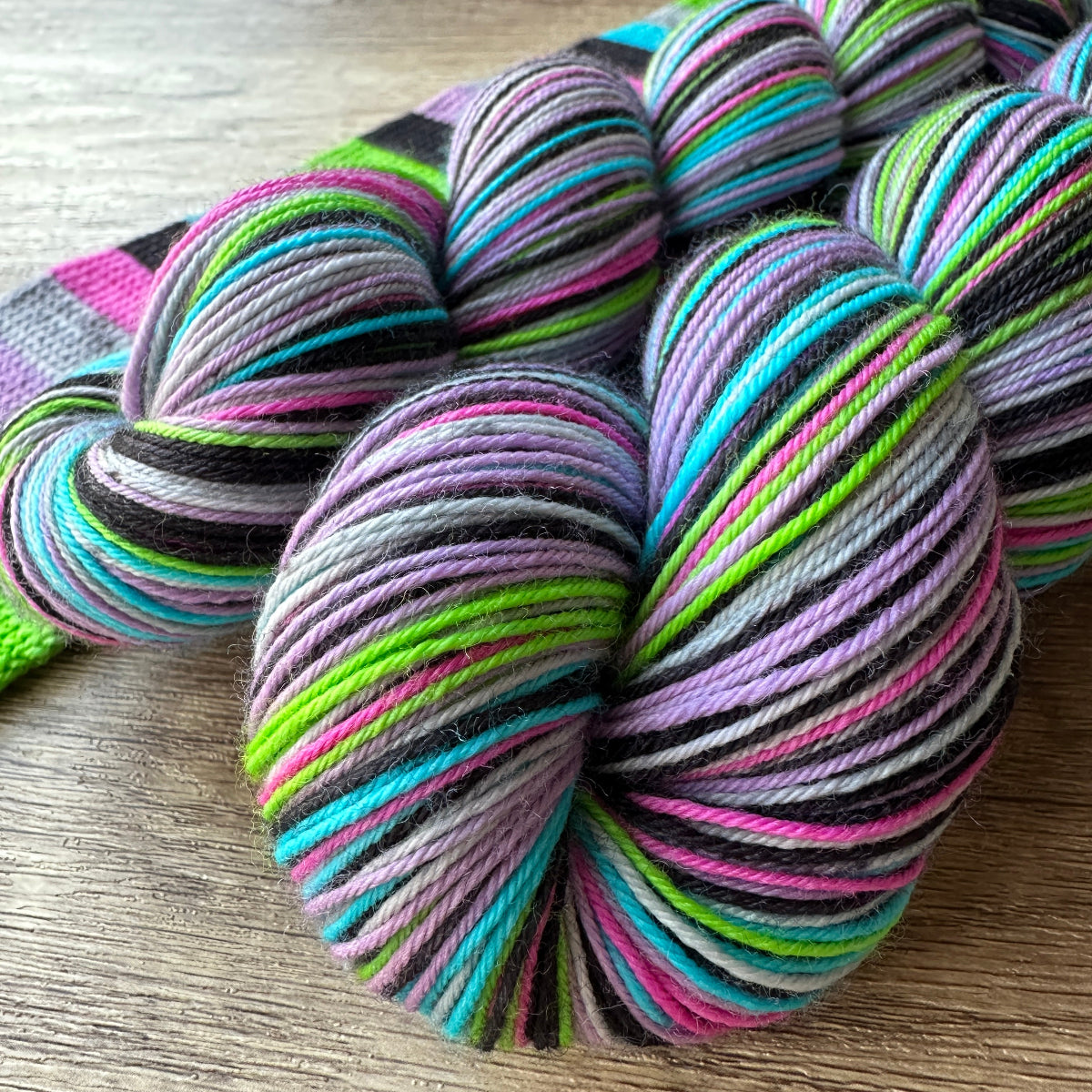 EVERY SKEIN IS A "MUST MATCH" SKEIN MEANING YOU WILL RECEIVE TWO PERFECTLY MATCHED HALF SKEINS TWISTED TOGETHER. EACH HALF SKEIN STARTS AND STOPS IN THE EXACT SAME PLACE IN THE COLOR SEQUENCE!