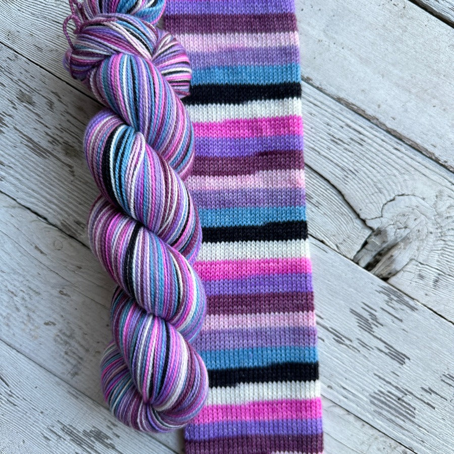 Love this base. So soft for socks. This is the first colorway from Must Stash I have worked with that is a pastel. I am loving the soft shades. I think more soft colors are in my future
