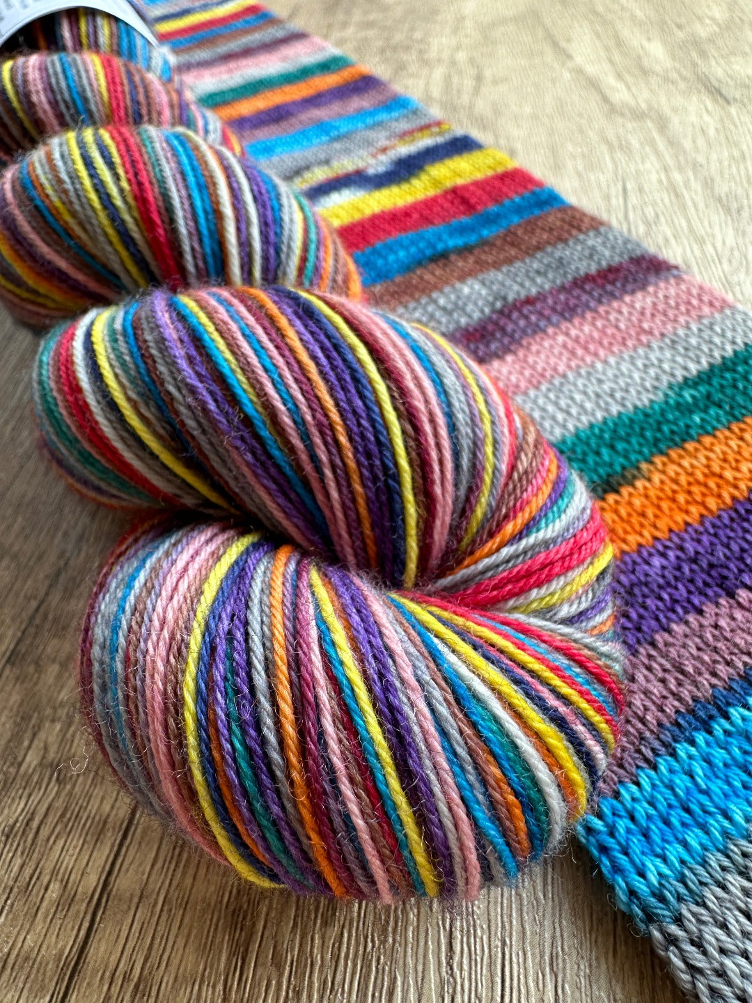 I have knit with MustStash many times, and have more in my stash, but when I saw Bohemian offered again I had to have it! The socks I made with it before (see photo) are a favorite, and I think I just MUST have another pair, using a different pattern of course 😁😘 Thanks so much!!