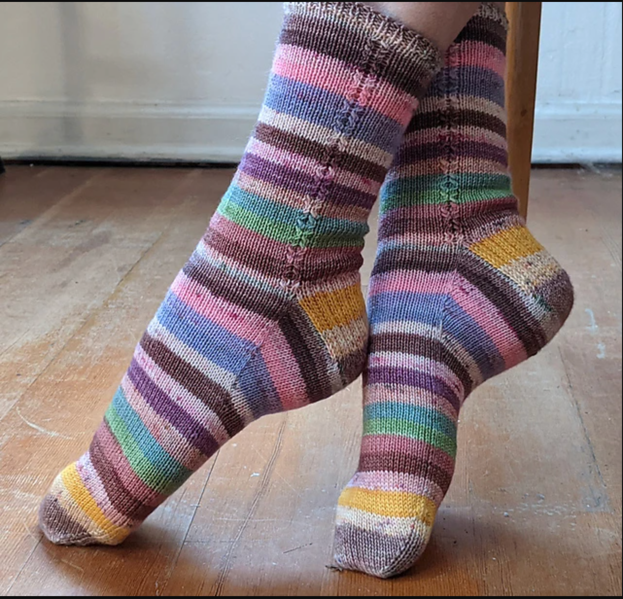 Candy Kisses Socks, photo credit Sivia Harding, are knit toe up with a sweet as candy cable pattern on each side of the leg!