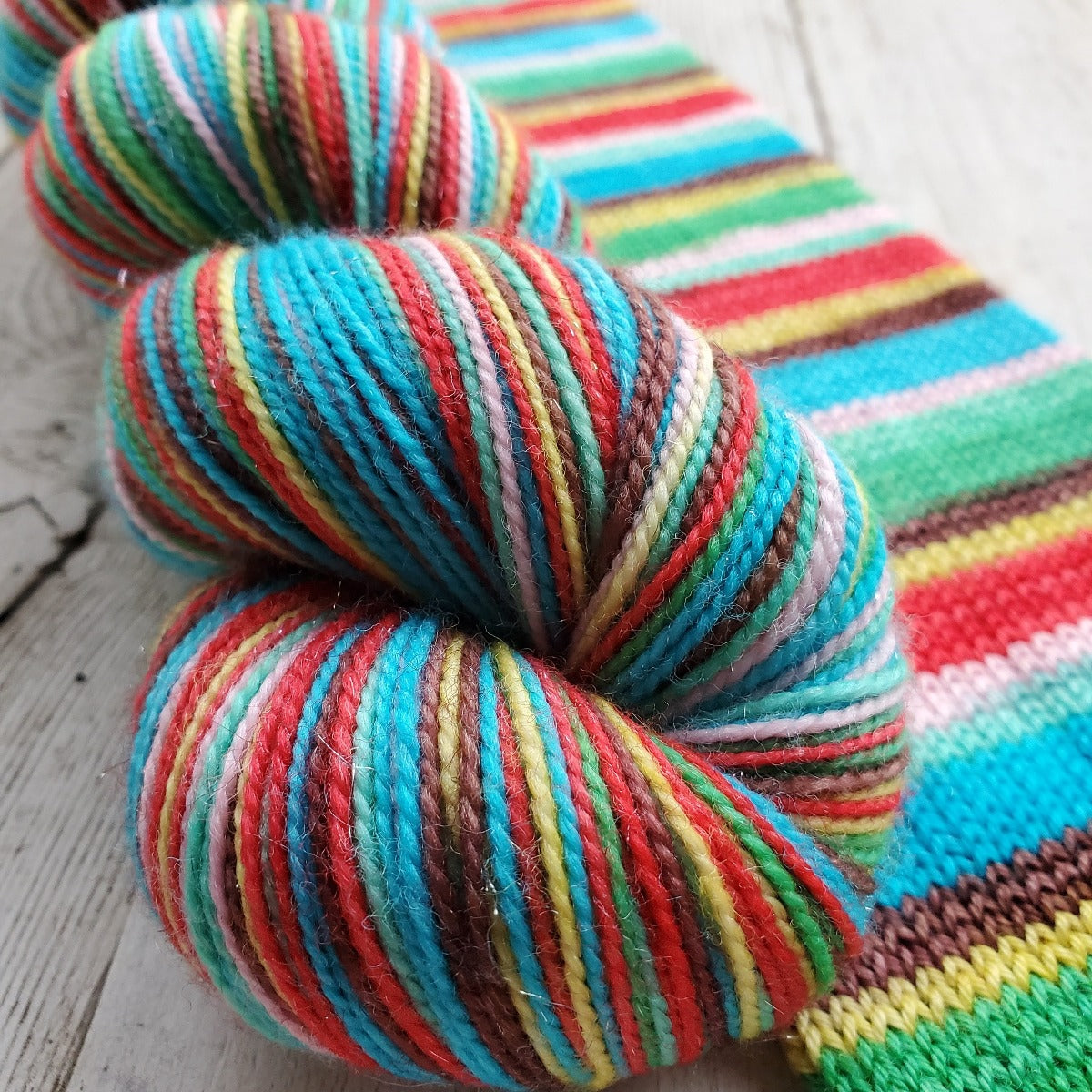 Every skein is a "Must Match" skein meaning you will receive two perfectly matched half skeins twisted together. Each half skein starts and stops in the exact same place in the color sequence!