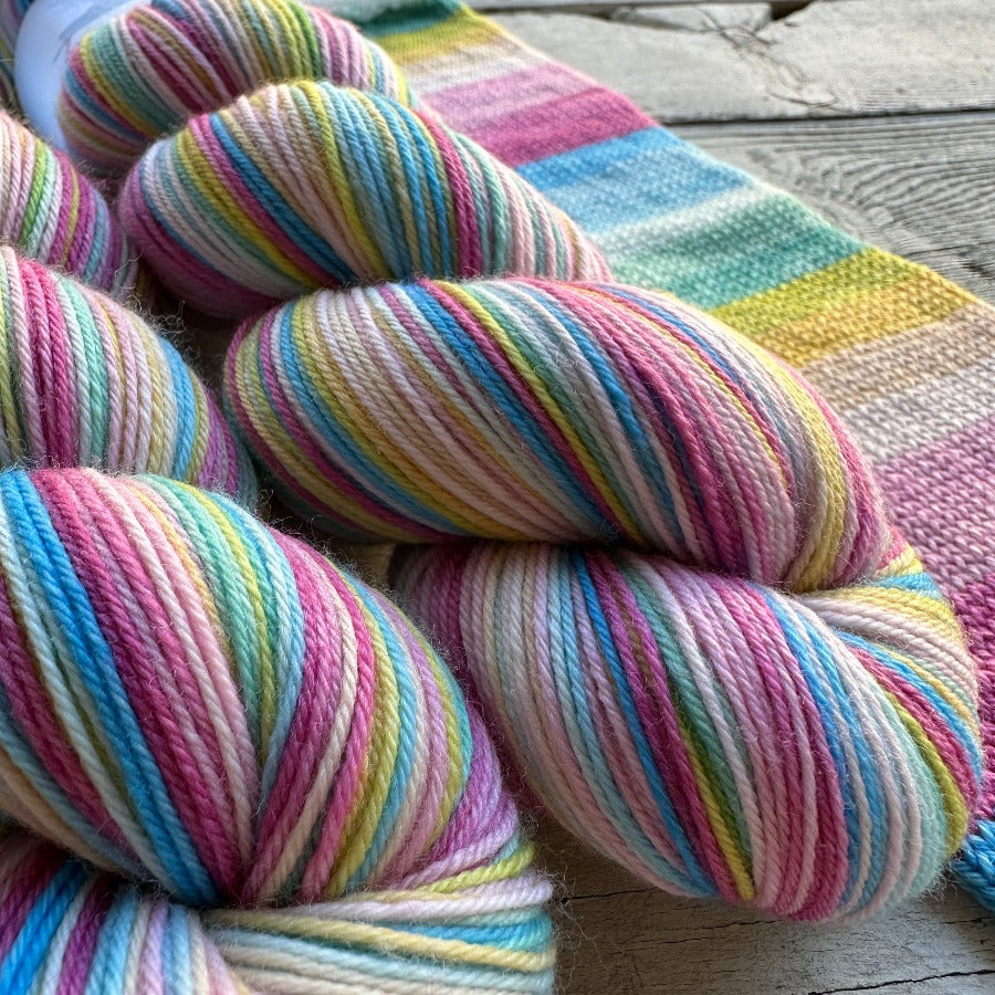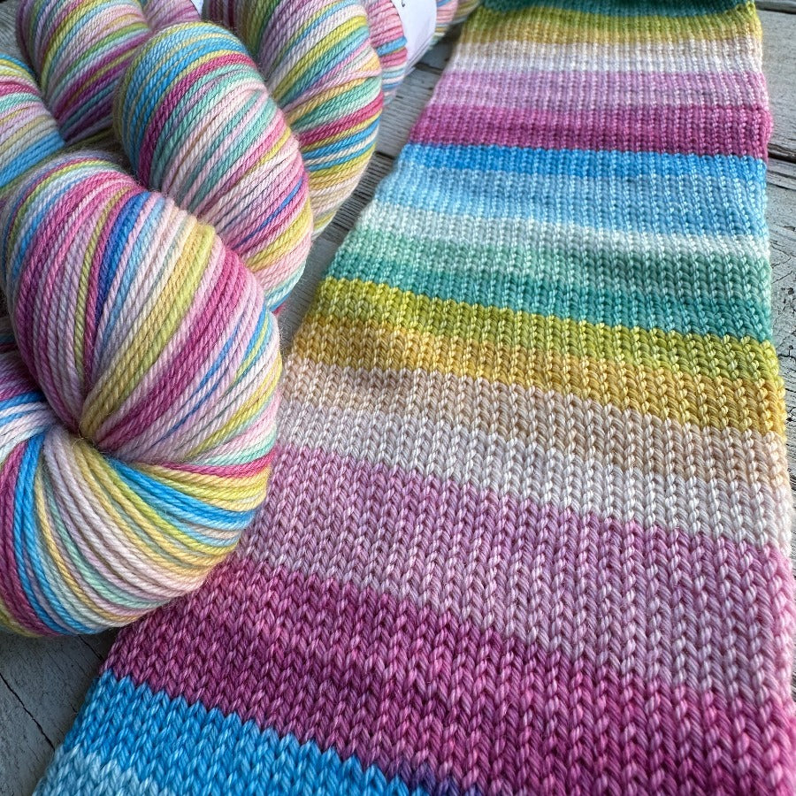 Every skein is a "Must Match" skein meaning you will receive two perfectly matched half skeins twisted together. Each half skein starts and stops in the exact same place in the color sequence!