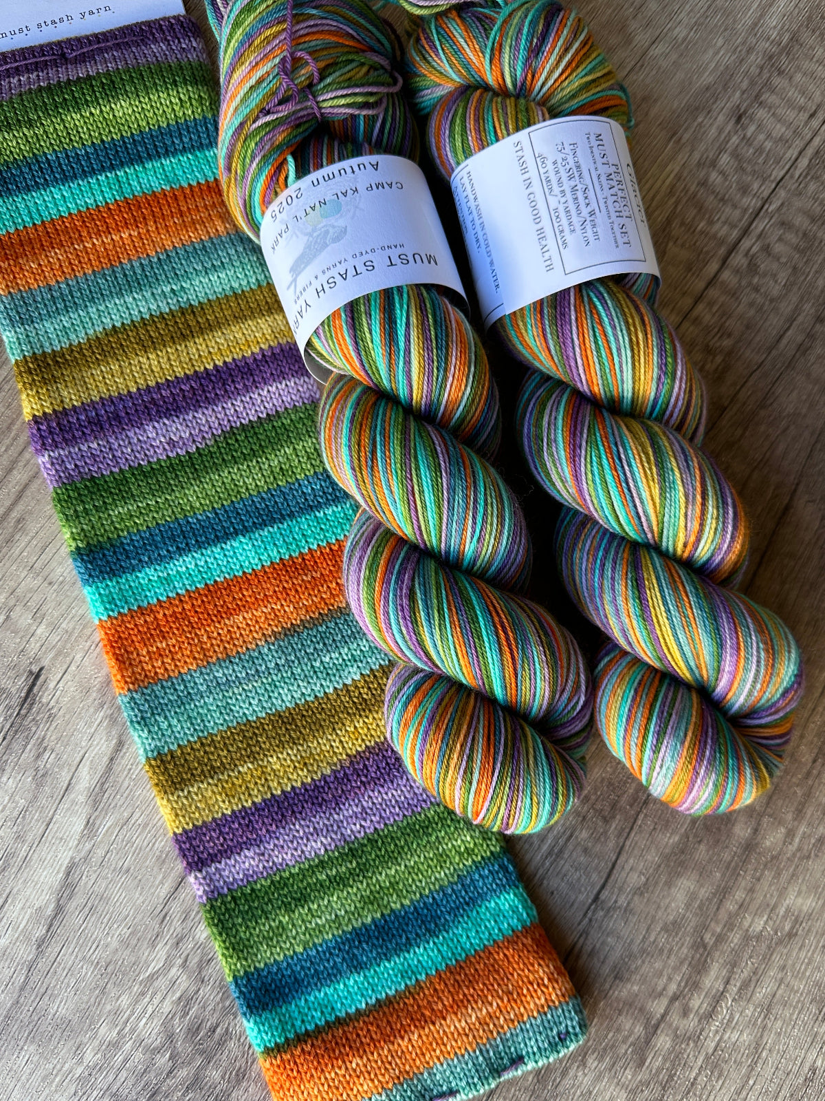 -must match set, two perfectly matched half skeins twisted together/each half skein starts and stops in the exact same place in the color sequence!