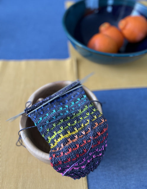 * Photo credit for slipped stitch socks/wip: Patricia Thom in her pattern, Cog Railway Socks.