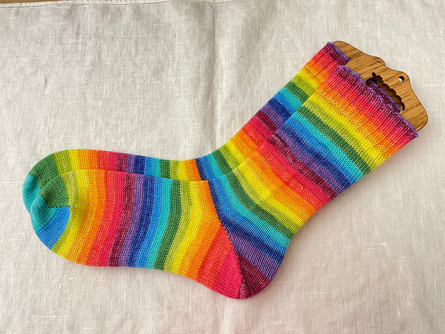 12 stripes in a pastel version of Martian Rainbow as seen in the Leaning (Right) Left Socks by Nailya Plasky!
